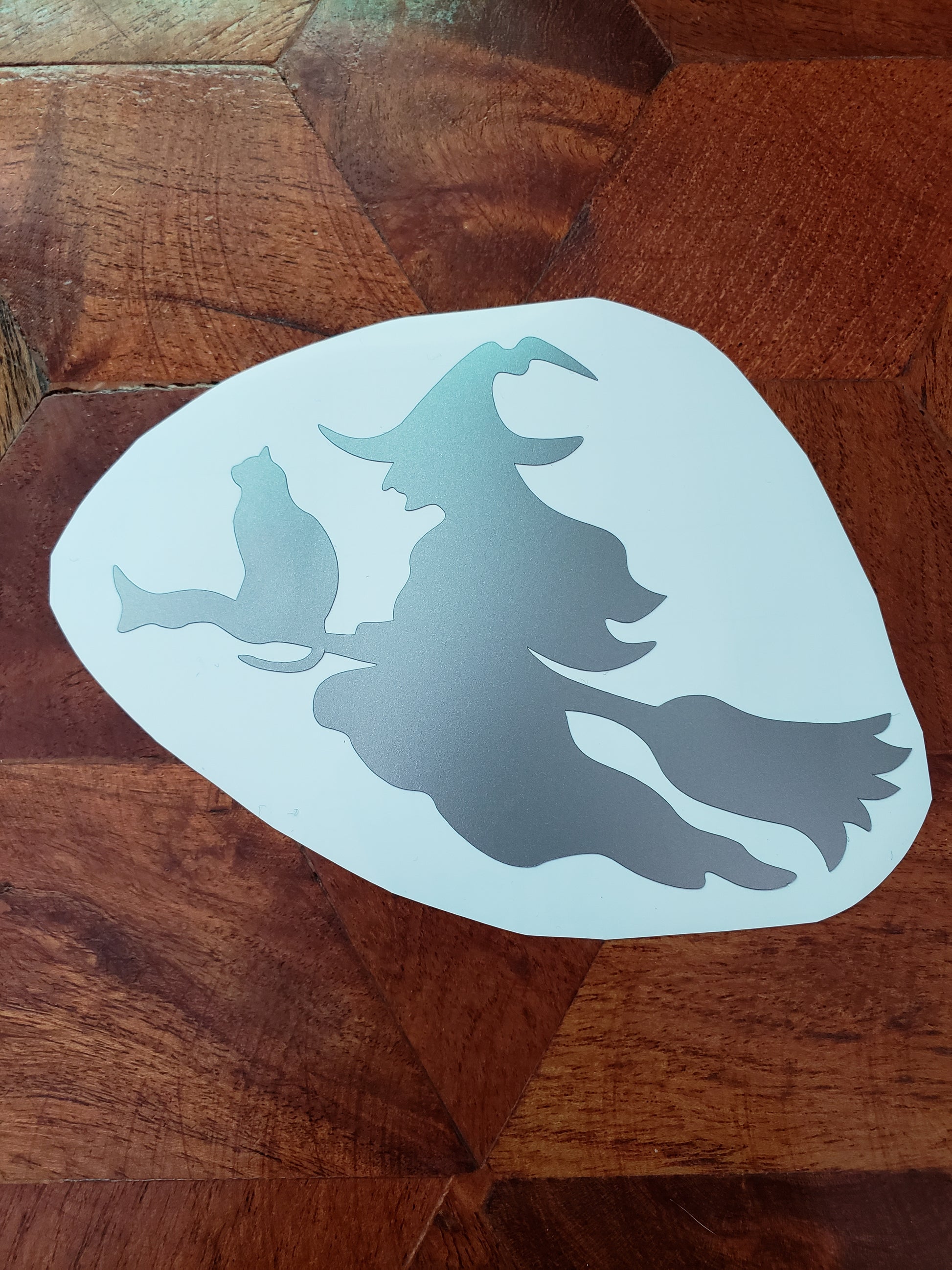 Broomstick Witch and Cat Permanent Vinyl Sticker